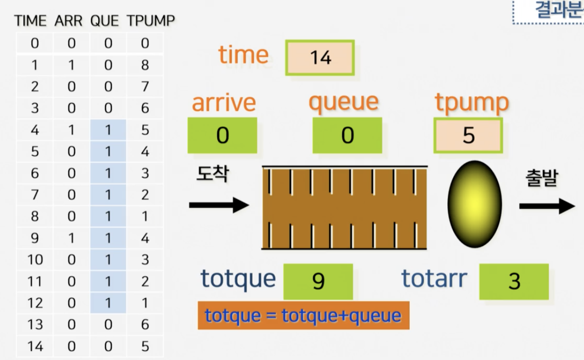 6. 평균대기행렬 길이는 대기시간 / 총 시뮬레이션 시간