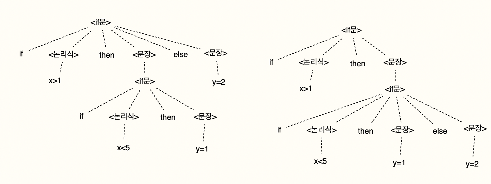 <if문2> ::= if <논리식> then <문장2> else <문장2>