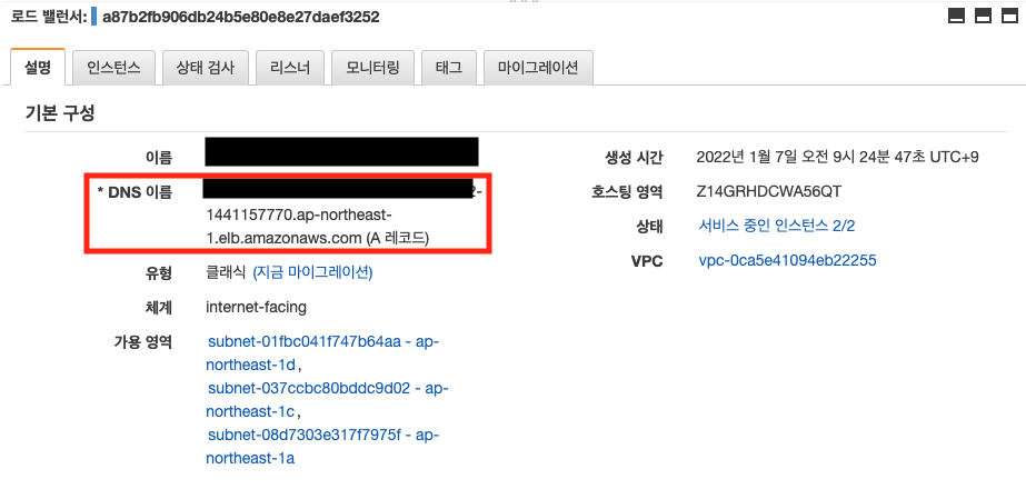 EC2 > 로드밸런서 의 DNS이름에서 확인할 수 있습니다.
